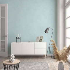 Vliestapete mit feinen Linien und leichter Struktur in Blau und Türkis