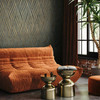 Vliestapete mit geschwungenen, schwarz glänzenden Streifen