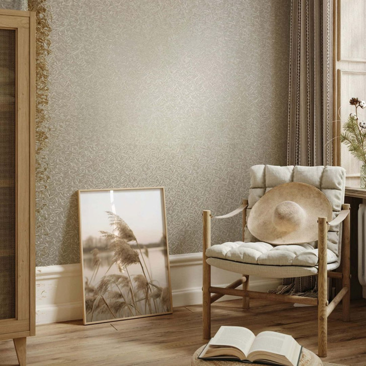 Vliestapete 3D-Optik, Blattmotiv Floral Klassisch in Beige