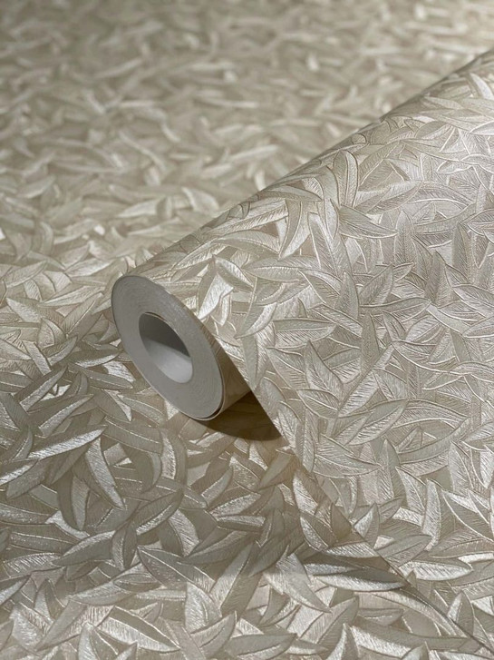 Vliestapete 3D-Optik, Blattmotiv Floral Klassisch in Beige