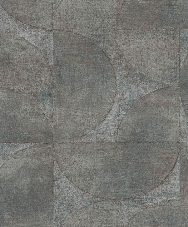 Vliestapete mit Halbkreisen und Rechtecken grau, blau Struktur