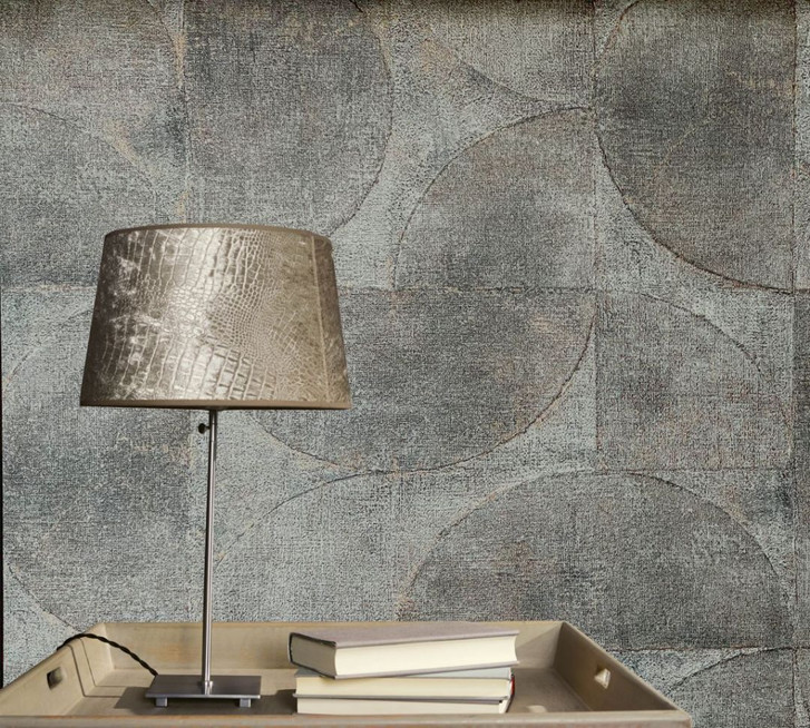Vliestapete mit Halbkreisen und Rechtecken grau, blau Struktur