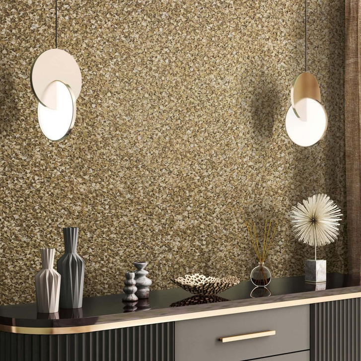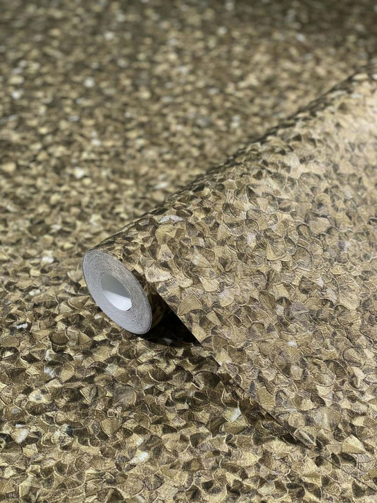Vliestapete mit kleinen glänzenden Blättern gold Uni von Harald Glööckler