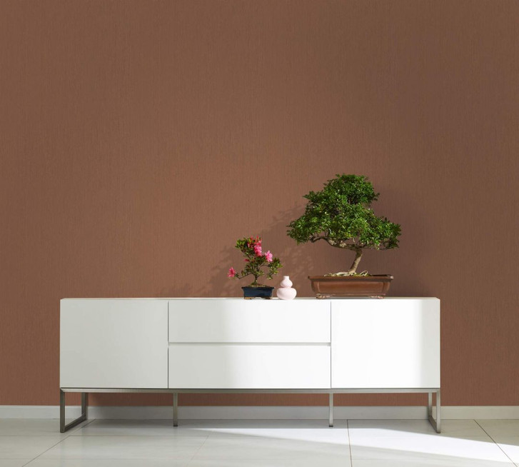 Braune einfarbige Vliestapete mit leicht linierter Textur