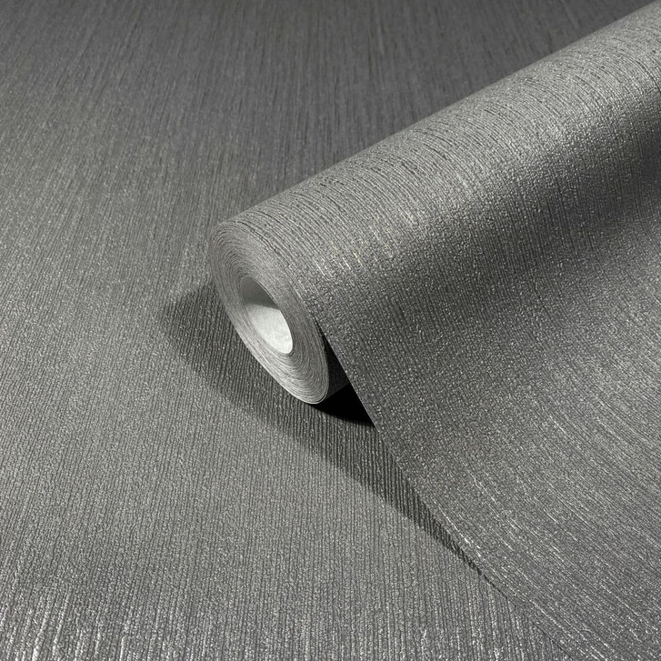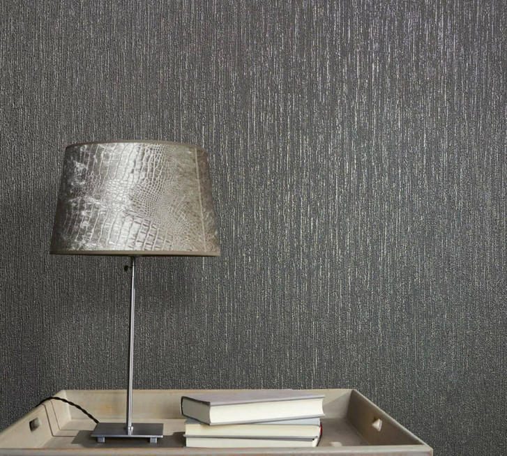 Vliestapete mit leichtem Glanz und feiner Struktur, anthrazit, silber uni
