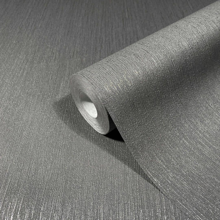 Vliestapete mit leichtem Glanz und feiner Struktur, anthrazit, silber uni