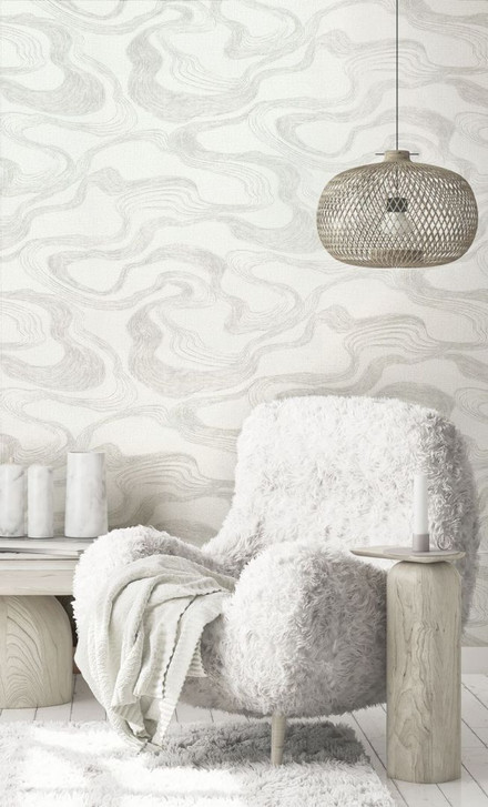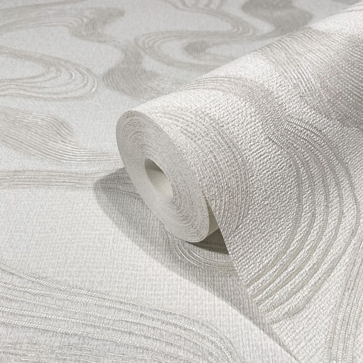 Vliestapete mit Nebelduns in glänzenden Bögen weiss Grafisch