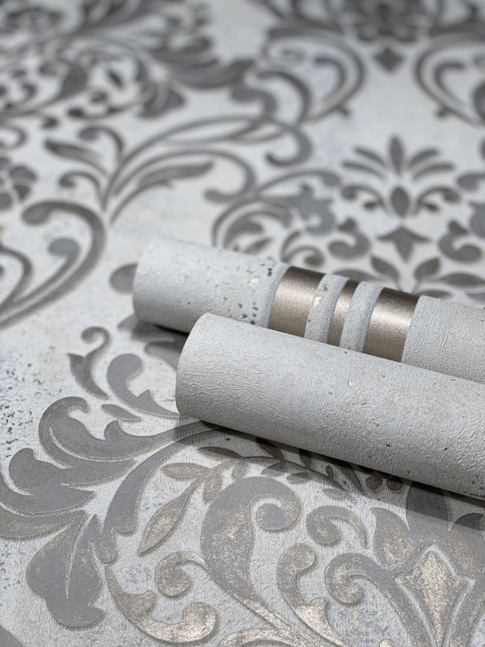 Vliestapete mit ornamentalem Damask-Motiv Grau Ornamental
