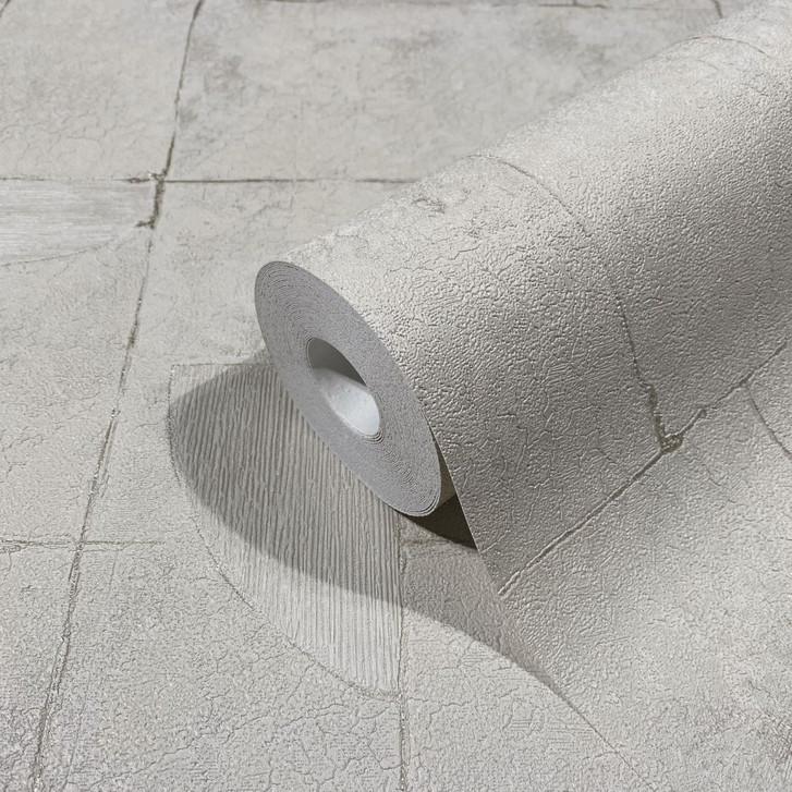 Vliestapete in Putzoptik in beigen Fliesen, grafisch