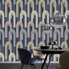 Vliestapete mit Rundbogen Motiv in blau, beige Grafisch