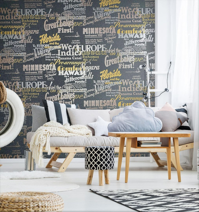 Vliestapete mit schwarzer Schrift, Grafisch