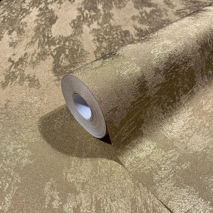 Vliestapete mit starkem Glanzeffekt in leichter Betonoptik gold Struktur