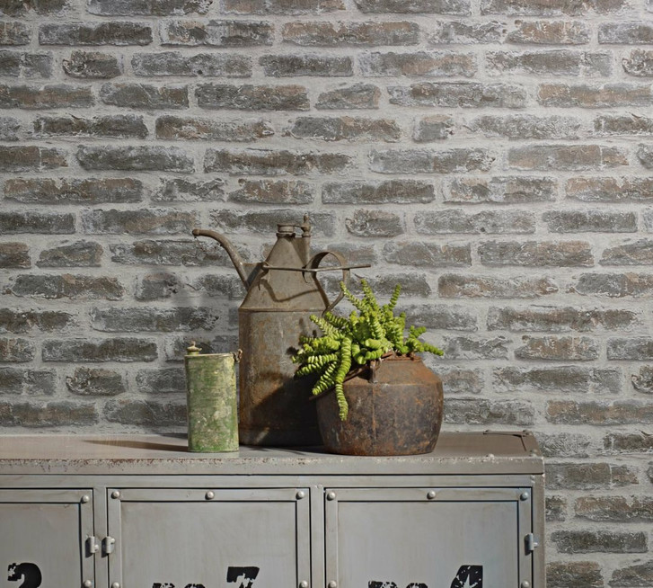 Vliestapete mit Steineffekt und 3D-Effekt, weiss, brauner Steineffekt