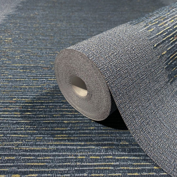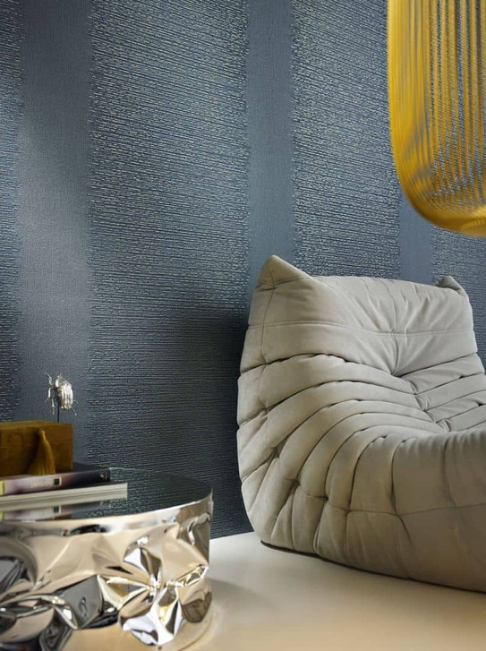 Vliestapete mit Streifen und feinen Linien blau, grau Struktur
