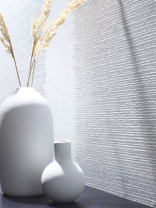 Weiss gestreifte und fein linierte strukturierte Vliestapete