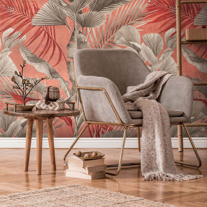 Fototapete Palmen Blätter Rot Grau Dschungel Schlafzimmer Vliestapete