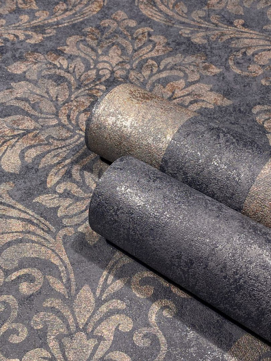 Klassische Barock-Tapete aus der GZSZ-Kollektion in Schwarz und Braun