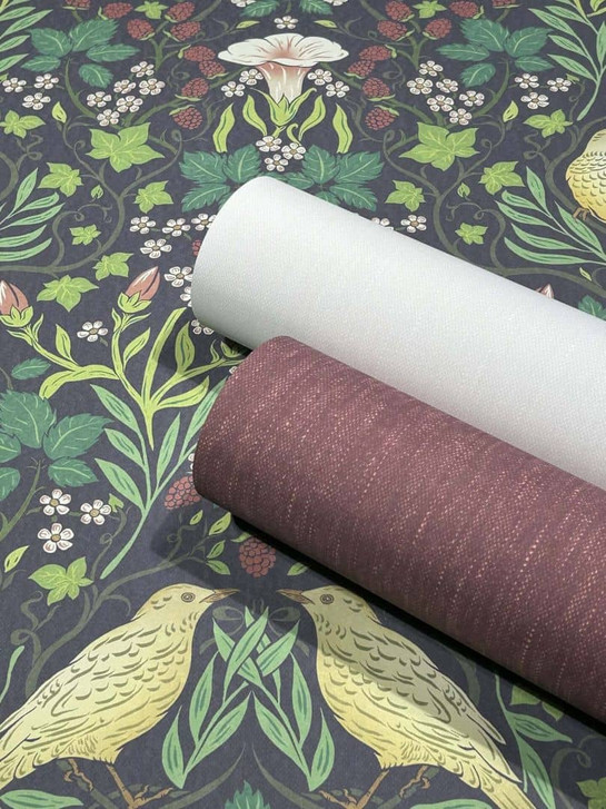 Vliestapete Vögel, Blumen Floral Natur in Schwarz