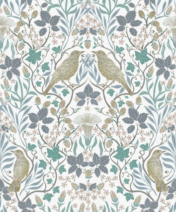 Vliestapete Vögel, Blumen Floral Natur in Weiss