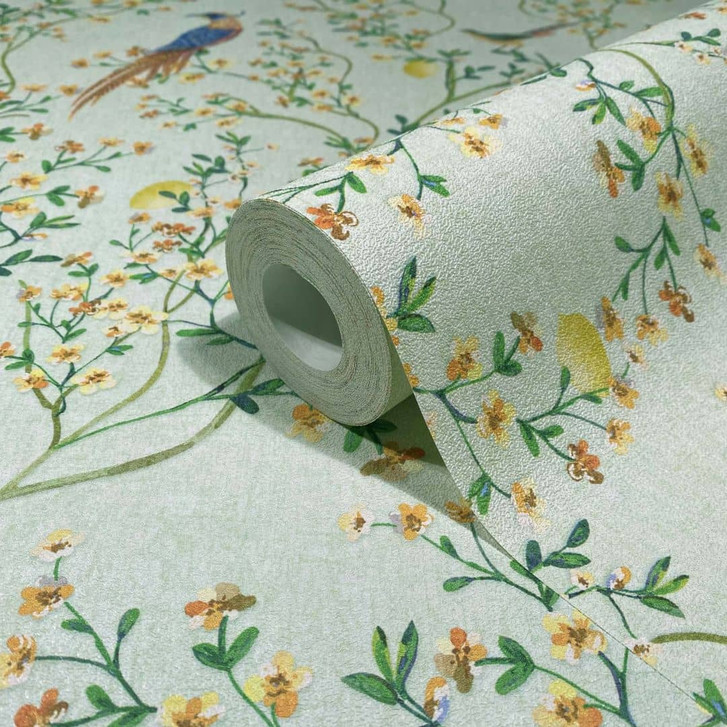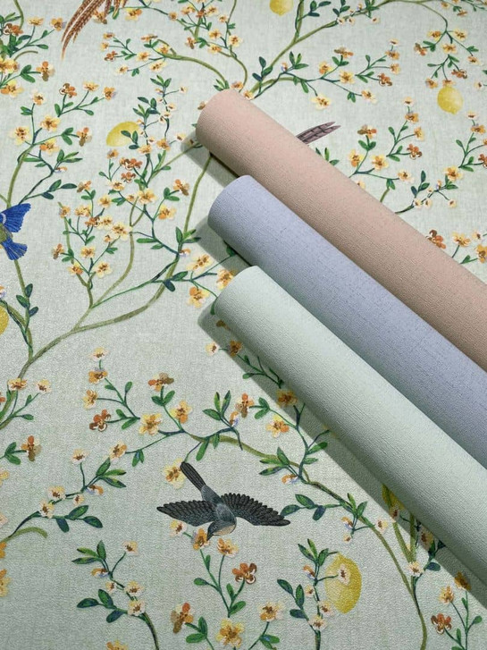 Glöööckler Provence - Verleihen Sie Ihren Wänden mit unserer Vliestapete "Vögel, Blumen Floral Natur in Grün" einen frischen, natürlichen Look.