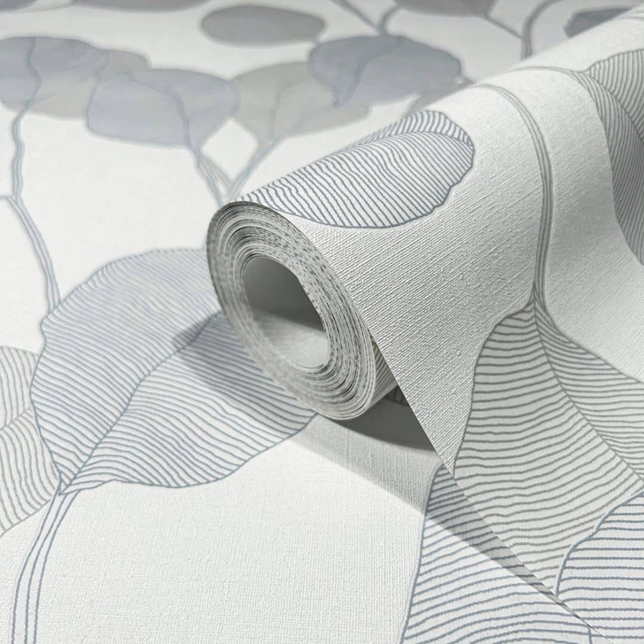 Moderne Tapete im floralen Stil aus der GZSZ-Kollektion in Weiss, Grau, Blau