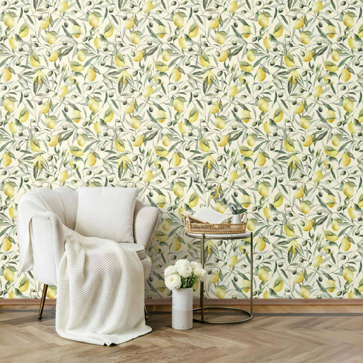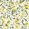 Glöööckler Provence - Verleihen Sie Ihren Wänden mit unserer Vliestapete Zitronen und Blätter in Beige einen frischen, floralen Akzent.