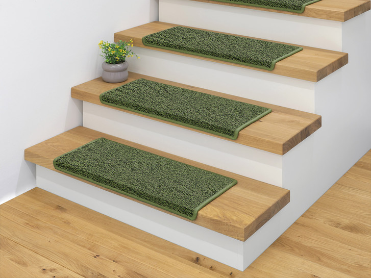 Unsere Stufenmatten sind in halbrund oder rechteckig erhältlich und sie können zudem mit oder ohne Winkel bestellt werden. Die Stufenmatten mit Winkel haben immer am Winkel einen Streifen Klebeband vormontiert, bei Stufenmatten ohne Winkel ist ab 5 Matten eine Rolle Klebeband kostenlos mit im Paket. Alle Stufenmatten sind auch als Teppichläufer, Teppichboden oder Massteppich verfügbar, so kannst du die Stufenmatten individuell kombinieren.