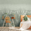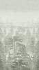 Lilly & Luis - Mystische Wald-Fototapete mit Bäumen im Nebel in sanften Grün- und Grautönen.
