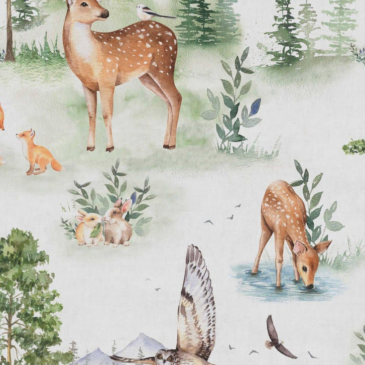 Lilly & Luis - Verspielte Kindertapete mit Rehen, Füchsen und Hasen im Wald.