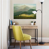 Der vorliegende Kunstdruck zeigt die Idylle eines kleinen Dorfes in einer bergigen Landschaft. Sonnenbeschienene grüne Hügel und ein zarter Nebel, der über den Bergen aufsteigt, verleihen diesem Gemälde seinen einzigartigen Ausdruck.