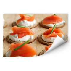 Setze den Wallprint mit der klebenden Seite an dem Hilfsmarkierungen an und drücke ihn vorsichtig fest.