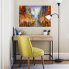 Der Kunstdruck von Annette Schmucker zeigt ein buntes Farbenspiel in einer Stadt. Der Wanddruck ist in verschiedenen Grössen erhältlich.