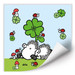 Setze den Wallprint mit der klebenden Seite an dem Hilfsmarkierungen an und drücke ihn vorsichtig fest.