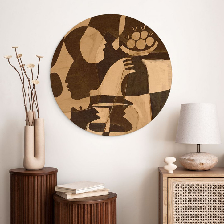 Runder Aluminium-Dibond mit abstrakter Komposition in Erdtönen