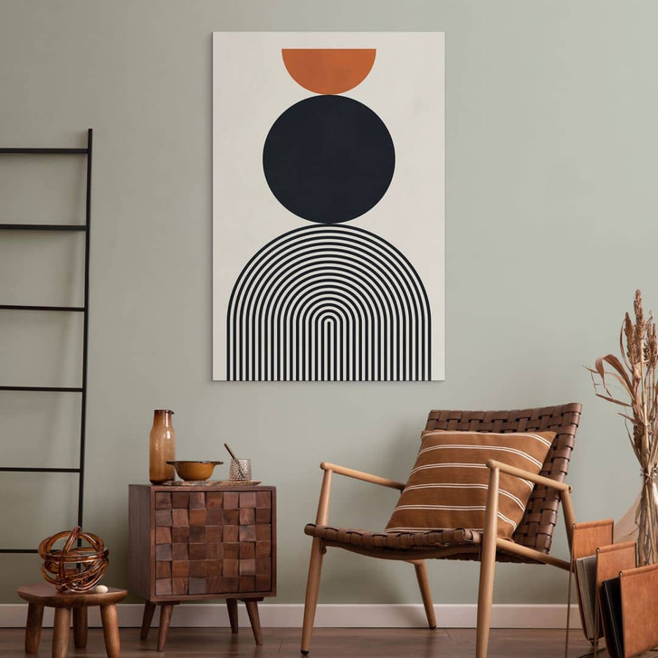 Die elegante Farbpalette aus Schwarz, Creme und warmem Terrakotta verleiht dem Motiv eine stilvolle und zugleich beruhigende Ausstrahlung. Die klar definierten geometrischen Formen schaffen eine moderne Ästhetik und verleihen deiner Wandgestaltung Textur.