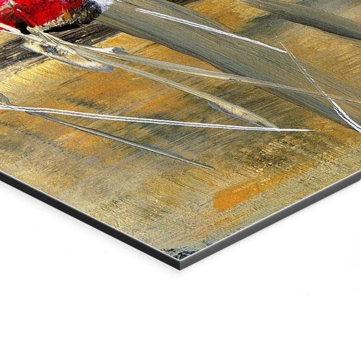 Das Kunstwerk ist auf hochwertigem Aluminium-Dibond gedruckt, das nicht nur durch seine aussergewöhnliche Farbbrillanz, sondern auch durch seine Langlebigkeit und Stabilität besticht. Die glatte, matte Oberfläche des Materials verhindert störende Lichtreflexe und lässt die Farben bei jedem Licht perfekt zur Geltung kommen.