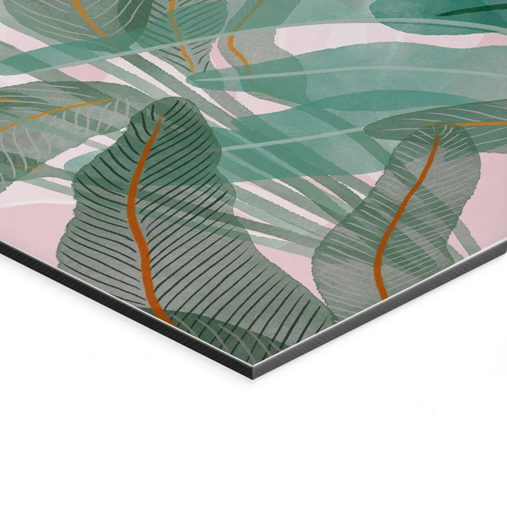 Wandbild Botanische Illustration in Grün und Rosa - Goed Blauw - Alu-Dibond