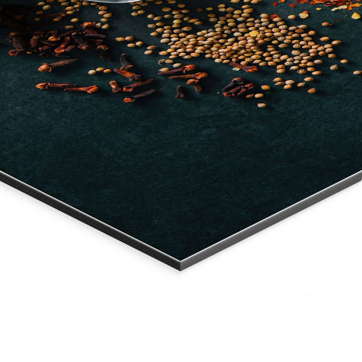 Alu-Dibond-Bild „Bunte Gewürzvielfalt“ – stilvolle Dekoration für Küche und Restaurant