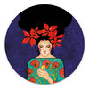 Wandbild Frau mit roter Blütenkrone und Vogel - Hülya - Alu-Dibond Rund