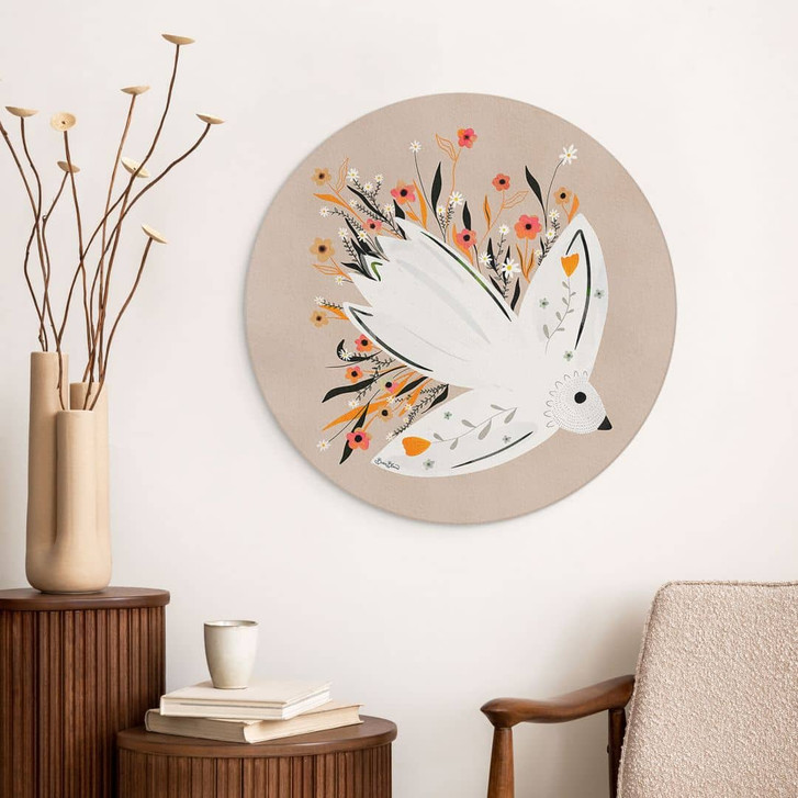 Wandbild Friedenstaube mit kleinen Blumen - Bloom - Alu-Dibond - Rund