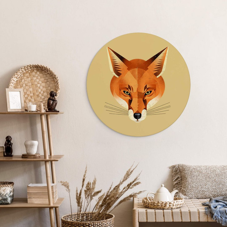 Du möchtest dein Zuhause optisch aufwerten? Mit diesem Tierwandbild setzt du sofort neue Highlights im Raum. Der Rotfuchs gilt als besonders schlaues Raubtier. Man erkennt ihn an seinem roten Fell und seinem unverwechselbaren Gesicht mit den hoch angesetzten Ohren. Das anpassungsfähige Tier findet fast überall einen Lebensraum, oft ist es in Wäldern und Parks zu sehen. Diese Tierillustration von Dieter Braun zeigt das Porträt eines Fuchses mit einem starken Gesichtsausdruck, der den Betrachter anzieht. Dieses runde Alu-Dibond-Bild harmoniert wunderbar mit den Themen Insekten und Tiere und Kunst und kann dank seiner hochwertigen Beschichtung auch im Aussenbereich, wie auf Balkonen und in Gärten, eingesetzt werden. Das Material ist leicht und gleichzeitig formstabil. Die seidenmatte Oberfläche verleiht dem Motiv einen leicht schimmernden Look.