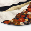 Dieses runde Wandbild von SpaceFrog Designs zeigt eine herbstliche Berglandschaft, die durch sanfte Farben und harmonische Formen besticht. Die minimalistische Darstellung der Berglinien in Schwarz und Gold bildet einen ansprechenden Kontrast zu den organischen Blumenmustern in leuchtendem Rot, Orange und Beige. Die klare Silhouette der Berge und die handgezeichneten Details verleihen dem Kunstwerk eine besondere Tiefe und Eleganz. Die helle Sonne am Himmel fügt sich als kraftvolles, zentrales Element in das Bild ein und unterstreicht die warme, beruhigende Stimmung.
