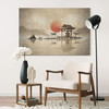 Alu-Dibond-Kunstwerk mit japanischem Tempel bei Sonnenaufgang