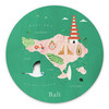 Dieser Aluminium-Dibond-Druck zeigt eine lebendige illustrierte Karte der Insel Bali mit kräftigen Farben und detaillierten Illustrationen. Der grüne Hintergrund erinnert an die tropische Atmosphäre der Region, während die Insel selbst in einem zarten Rosa dargestellt ist, um ihre kulturellen und natürlichen Merkmale hervorzuheben. Die Karte zeigt Symbole und Wahrzeichen, die Bali definieren: einen Pagodentempel, ein Surfbrett, exotische Früchte wie die Drachenfrucht und einen Roller, die alle die Vielfalt und den Charme der Insel widerspiegeln. Kleine Abbildungen von Palmen, Vögeln und einer Schildkröte vervollständigen die Szene und verstärken das exotische Flair. Die Bildunterschriften „Bali Sea“ und „Pacific Ocean“ rahmen die Insel ein, während der Name „Bali“ in eleganten Buchstaben am unteren Bildrand steht.
