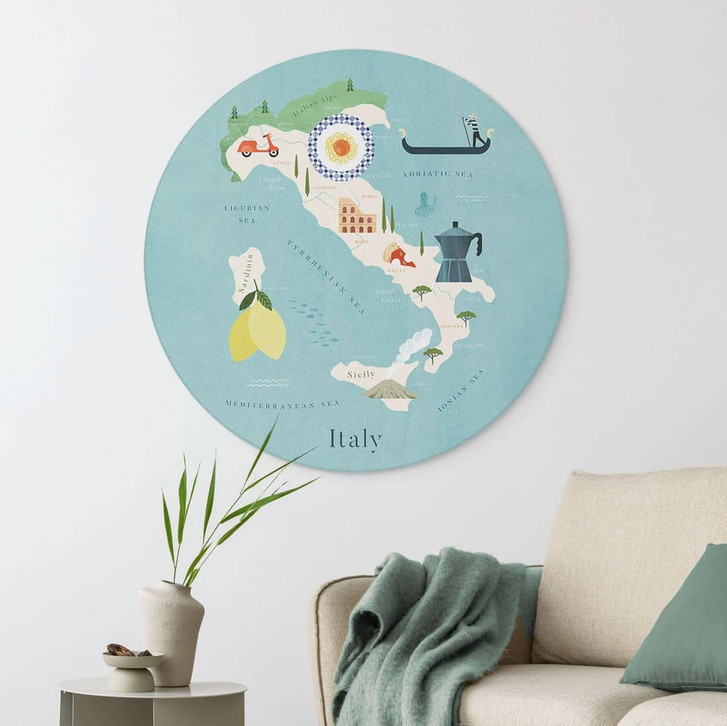 Wandbild Karte von Italien - Rivers - Alu-Dibond - Rund