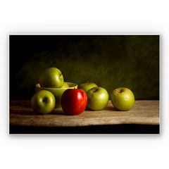 Die schöne Nahaufnahme eines dreiviertel Apfels auf einem Holzbrett ist ein harmonischer und natürlicher Blickfang für jede Küchenwand. Mit dem Fotokunstwerk des Fotokünstlers Luiz Laercio kannst du ein gemütliches Ambiente schaffen.