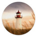 Die runde Form des Drucks verleiht dem Motiv eine besondere, harmonische Ästhetik, die sich perfekt in jeden Raum einfügt. Die warmen Farben, kombiniert mit dem leuchtenden Rot des Leuchtturms, schaffen eine angenehme maritime Atmosphäre, die sowohl Ruhe als auch Inspiration vermittelt.