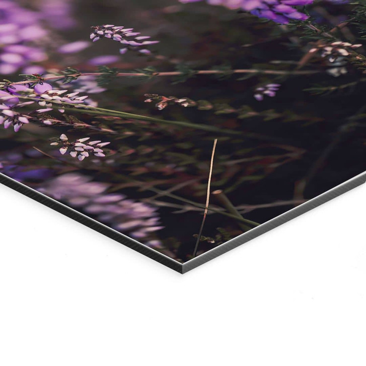 Wandbild Lila Heideblüte im warmen Licht | Naturfotografie fürs Wohnzimmer - Annie - Alu-Dibond
