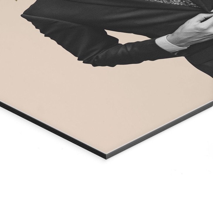 Wandbild Mann im Anzug mit Wildblumen - Frida Floral Studio - Alu-Dibond