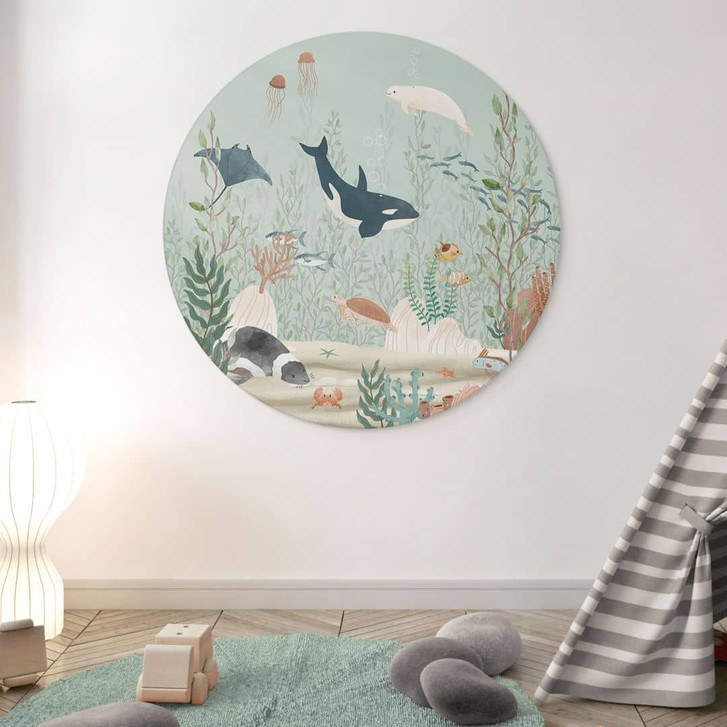 Erst mit ansprechenden Wanddekorationen entsteht eine einzigartige Atmosphäre im Kinderzimmer. Verleihe deinem Zuhause mit diesem Wandbild eine individuelle Note! Lass dein Kind alle Meeresbewohner auf dem farbenfrohen Wimmelbild entdecken. Zwischen Korallen, Wasserpflanzen und Muscheln tummeln sich eine Robbe, ein Rochen, ein Orca, ein Beluga-Wal, ein Blauwal, eine Schildkröte sowie verschiedene Fische und Quallen. Tauche ein in eine beeindruckende Unterwasserwelt!